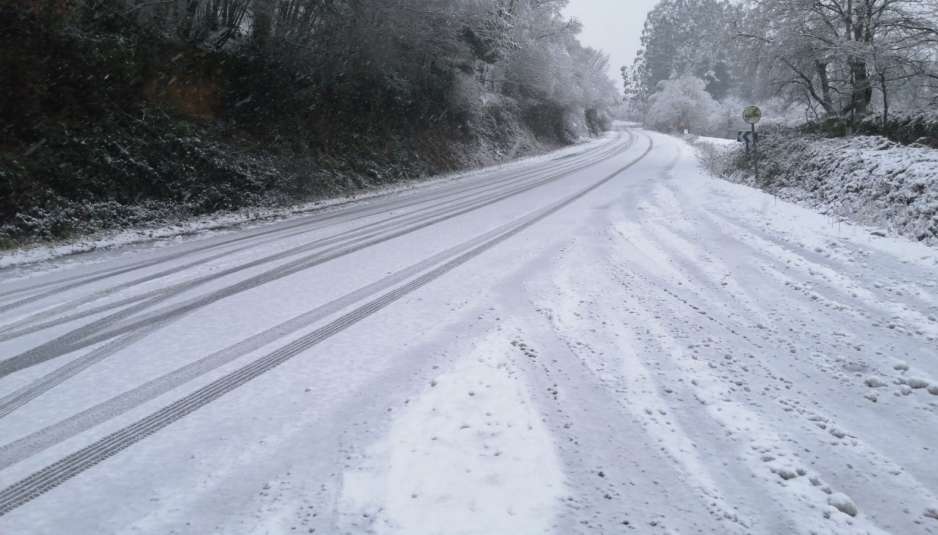 A neve e as xeadas dificultan a circulación nas estradas da montaña luguesa