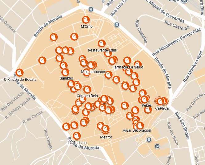 O mapa, accesible a través da web e das redes sociais de Lugo Monumental, permite localizar facilmente os 79 comercios, bares e restaurantes adheridos á iniciativa. Cada punto do mapa mostra o nome e a dirección do establecemento, onde os máis pequenos poderán recoller caramelos ao longo da xornada.“O ‘Truco ou Trato’ consolidouse como unha das citas máis esperadas do outono no centro histórico, combinando a tradición infantil de Samaín coa promoción do comercio local”, sinalan desde a Asociación Lugo Monumental.